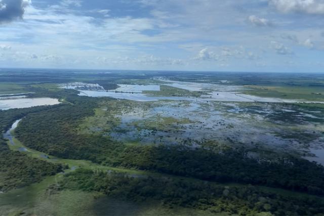 El viceministro de Defensa Civil, Juan Carlos Calvimontes, hizo un sobrevuelo de reconocimiento por los municipios de Pailón, Okinawa, Cuatro Cañadas y San Julián. Entre estos, Okinawa es la región con más familias afectadas, por eso el alcalde y el viceministro comenzaron a coordinar acciones, como el envío de ayuda humanitaria.