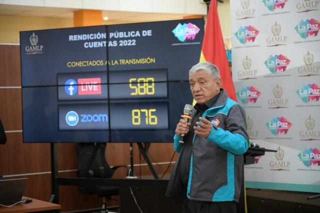 A la Rendición Pública de Cuentas Final de la Gestión 2022 asistieron secretarios municipales, subalcaldes, dirigentes de la Federación de Choferes Urbanos de La Paz Chuquiago Marka, de la Federación del Transporte Libre y del cooperativo, además de representantes del Organismo y Control Social, de la Federación de Juntas Vecinales de La Paz, entre otros.