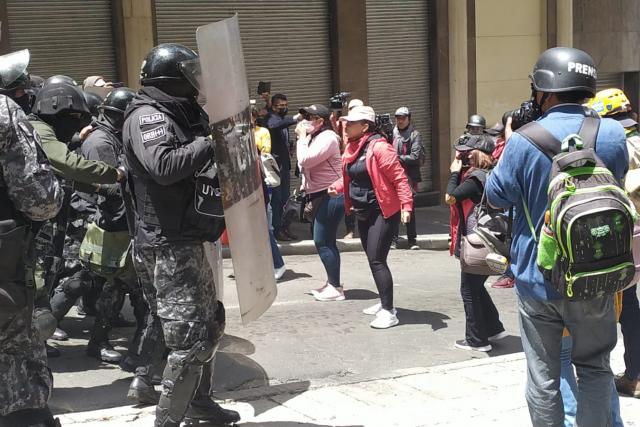 Y es que los maestros buscaron entrar a la Plaza Murillo, pero se encontraron con un contingente policial que les impidió el paso.