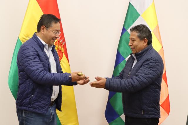 El presidente Luis Arce Catacora entregó al vicepresidente, David Choquehuanca, el Bastón de Mando del país y partió rumbo a República Dominicana para participar de la XXVIII Cumbre Iberoamericana de Jefes y Jefas de Estado.
