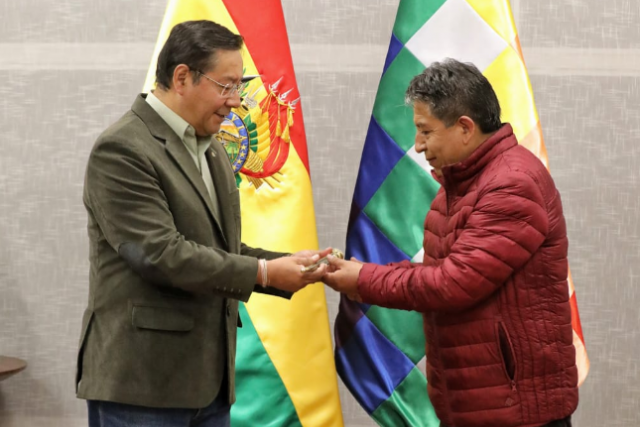 El presidente del Estado, Luis Arce, dejó, la mañana de este jueves, el Bastón de Mando al vicepresidente David Choquehuanca y emprendió viaje a Caracas, Venezuela, donde participará en la III Comisión de Integración Conjunta Venezuela-Bolivia en el marco de la cooperación bilateral.