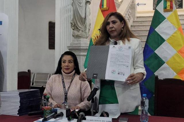La presidenta de la Comisión Mixta de Constitución de la Asamblea Legislativa Plurinacional (ALP), senadora Patricia Arce, junto al diputado y miembro de la Comisión, Patricio Mendoza, con la correspondiente apertura de los libros notariados, oficializaron hoy el inicio de la recepción de documentación para la preselección de candidatas y candidatos a magistrados, en las próximas Elecciones Judiciales.