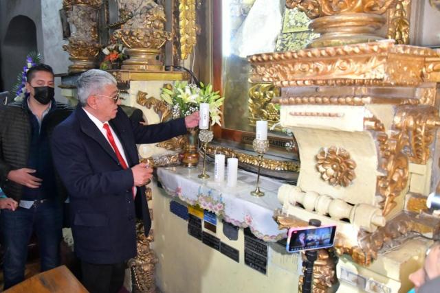 El burgomaestre llegó a las 10:30 al templo, se dirigió al altar donde se encuentra la imagen de la Virgen del Carmen, encendió una a una las cuatro celas dispuestas en el lugar a la par de hacer sus pedidos. Y una vez encendidas las velas, rezó un Padre Nuestro, un Avemaría y Gloria.