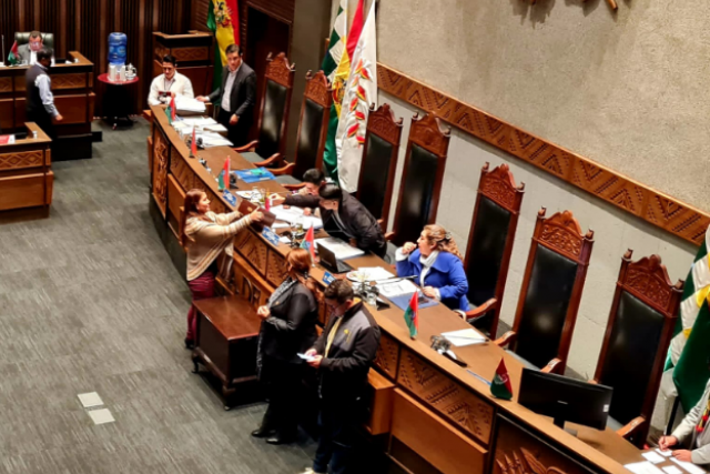 La Comisión, en ese sentido, quedó conformada por los senadores Luis Adolfo Flores (MAS), Simona Quispe (MAS), William Torrez (MAS) y Julio Diego Romaña (Creemos).
