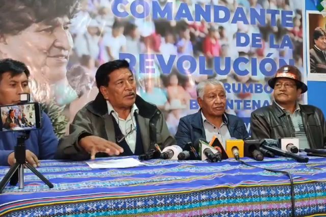En conferencia de prensa, la dirigencia evista afirmó que no participará de ningún evento “inorgánico” y expresó su desconocimiento a la actual dirigencia de algunas organizaciones sociales, tales como de los Interculturales y de la Confederación Sindical Única de Trabajadores Campesinos de Bolivia (CSUTCB).