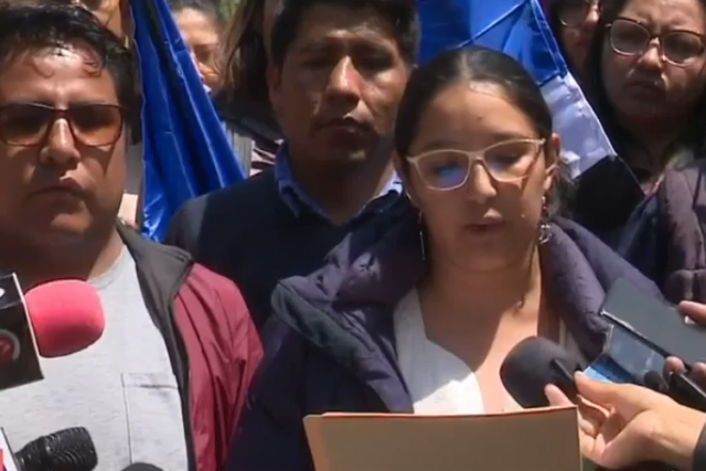 “Hacemos un llamado a todos aquellos comprometidos con la lucha social ante el riesgo de la rearticulación de la derecha fascista, racista, golpista y asesina, y de los impulsores de la división que persiguiendo intereses personales y angurrientos de poder avanzan hacia sus metas sin mirar el daño que están causando a nuestro país”, señala el pronunciamiento de los funcionarios públicos, al cual se dio lectura en una conferencia de prensa en la plaza Murillo.