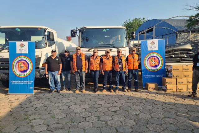La dotación de los equipos inició en Santa Cruz con la distribución de 30 geomembranas, 4.000 pastillas de potabilización, 100 filtros vela, 21 cisternas y 9 camionetas, con una inversión de Bs 5,4 millones en favor de más de 2.000 familias damnificadas en Santa Cruz y el Chaco.