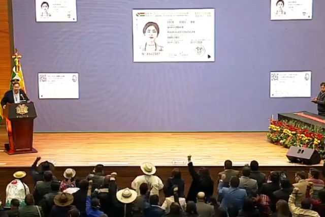 “Nosotros estamos muy contentos de hoy, 1 de noviembre, presentar a Bolivia y al mundo nuestro nuevo carnet de identidad, nuestra nueva Cédula de Identidad”, expresó el dignatario de Estado, en el acto de presentación en la Casa Grande del Pueblo, acompañado de autoridades nacionales y representantes de organizaciones sociales.