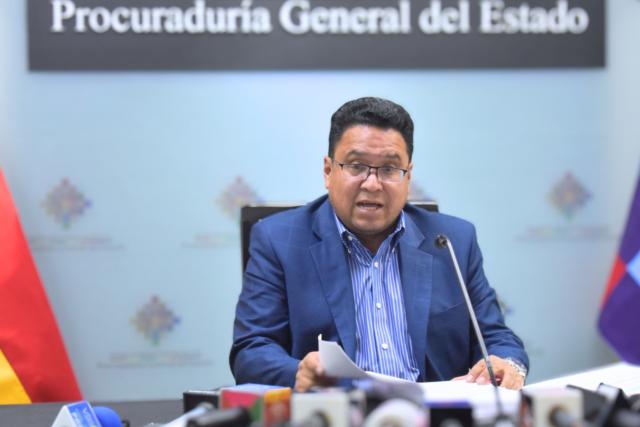 El Procurador General del Estado en conferencia de prensa.