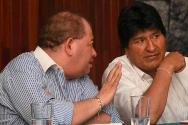 Evo Morales (der.) junto a su exministro Carlos Romero.