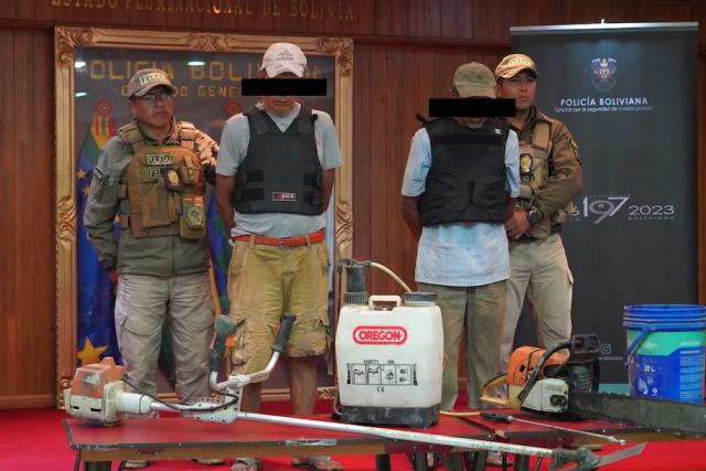 Dos ciudadanos acusados por el delito de incendios fueron sorprendidos en flagrancia cuando generaban quemas y talas forestales en la localidad de Tumupasa, municipio de San Buenaventura, La Paz.