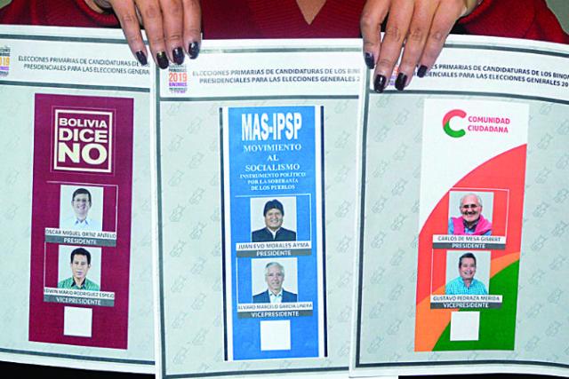 Bajo ese paraguas, el 27 de enero de 2019 se organizó en Bolivia las inéditas elecciones primarias. En el Movimiento Nacionalista Revolucionario; el Partido Demócrata Cristiano; el Movimiento Al Socialismo-Instrumento Político por la Soberanía de los Pueblos; Unidad Cívica Solidaridad; Frente Para la Victoria; Partido de Acción Nacional Boliviano; Movimiento Tercer Sistema; Alianza Comunidad Ciudadana; y Alianza Bolivia Dice No se realizaron primarias con un solo un binomio.
