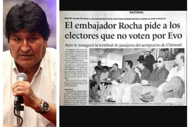 “En enero de 2002, Tuto Quiroga y sus aliados neoliberales me expulsaron del congreso con falsas acusaciones de asesinato y narcotráfico. En junio de ese año, Manuel Rocha amenazó con cortar la ayuda de EEUU si el pueblo votaba por el MAS-IPSP con Evo presidente. Ahora, el nuevo vocero del gobierno, Manfred Reyes Villa, para justificar su derrota, dice que el ataque de Rocha supuesto agente de Cuba, contra Evo le hizo perder votos. Entonces, que se investigue también a Tuto Quiroga como otro espía cubano porque igualmente nos ayudó con la expulsión del congreso”, señaló Morales.