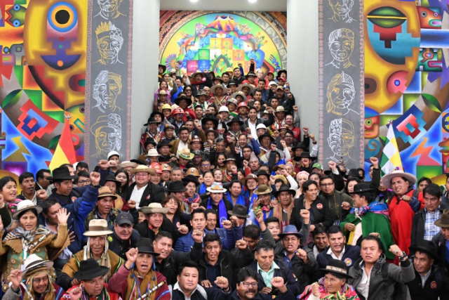 Gremiales, transportistas, mineros, interculturales, campesinos, indígenas, obreros, fabriles, entre otros sectores, se dieron cita en instalaciones de la Casa Grande del Pueblo para analizar la coyuntura política que se vive en Bolivia.