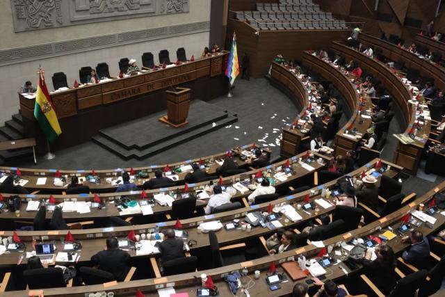 La sesión empezó el jueves por la tarde, pero se tuvo que determinar un cuarto intermedio ante agresiones verbales y físicas entre diputados. Legisladores de oposición tomaron la testera exigiendo tratar los los proyectos de ley de cesación del mandato de los magistrados del Órgano Judicial y del Tribunal Constitucional, y de suspensión de plazos procesales.