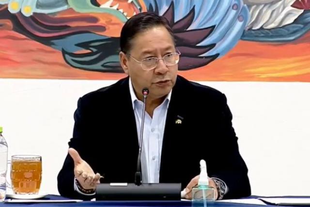 El Presidente Luis Arce en conferencia de prensa.