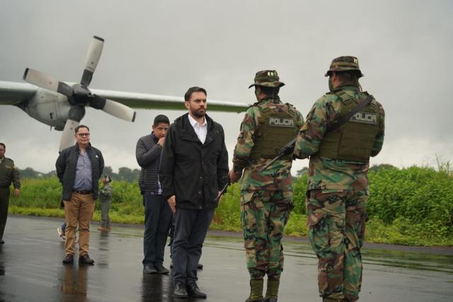“¡Llegamos al aeropuerto de Chimoré para realizar la entrega de la "1era Flota de Aeronaves y Equipamiento para el fortalecimiento de la Lucha Contra el Narcotráfico"!”, informó el Ministro de Gobierno a través de sus cuentas oficiales en las redes sociales.