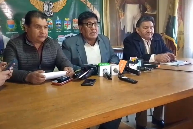 La Confederación Sindical de Choferes de Bolivia en conferencia de prensa.