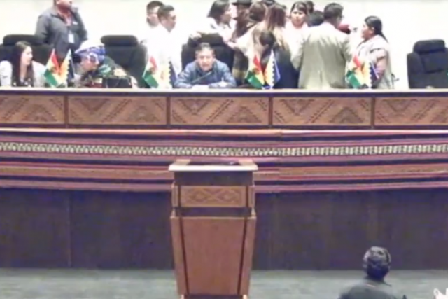 Tras el accionar de Mamani, varios legisladores dejaron sus curules para ir hasta la testera y ahí se produjo una trifulca mientras el presidente de la ALP, David Choquehuanca, pedía orden y aseguraba que se daría la palabra a todos los diputados y senadores que así lo soliciten.