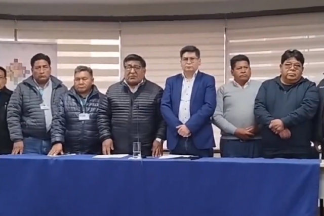 “Decir a nuestros compañeros del transporte boliviano de las nueve federaciones del país y a los compañeros que están en las fronteras con países vecinos, se termina las 24 horas de paro”, afirmó el dirigente del transporte federado Lucio Gómez a la conclusión de la reunión y en una conferencia de prensa junto a Montenegro.