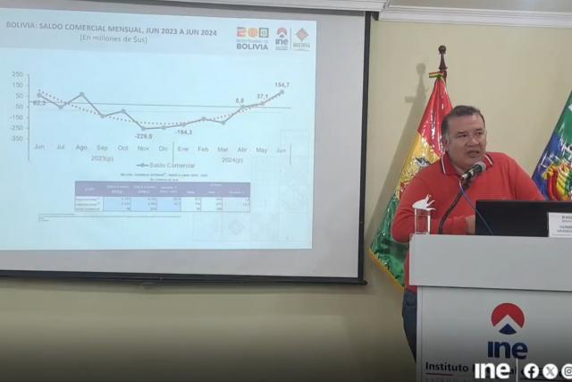 Por tercer mes consecutivo registramos un saldo de balanza comercial positivo, siendo este saldo de balanza comercial que se registra al mes de junio de 155 millones de dólares, siendo el más alto de la gestión 2024”, informó este lunes el director del INE, Humberto Arandia.