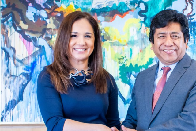 La canciller (s) de Chile, Gloria de la Fuente, y el viceministro de Relaciones Exteriores de Bolivia,
