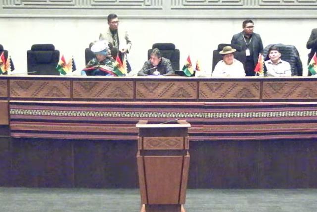 "Por procedimiento de la Asamblea Legislativa, no puedo instalar la sesión en ausencia de los secretarios (...) Vamos a hacer conocer una nueva convocatoria para el día lunes a las 14:30. Por tanto, no se instala esta sesión”, declaró el presidente de la Asamblea Legislativa, David Choquehuanca.