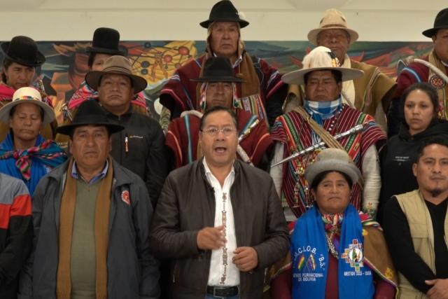 En un mensaje acompañado por los representantes de las organizaciones sociales y del Pacto de Unidad, Arce advirtió que no permitirá que se ponga en riesgo a la población con marchas y bloqueos innecesarios que solo buscan generar conflictividad.