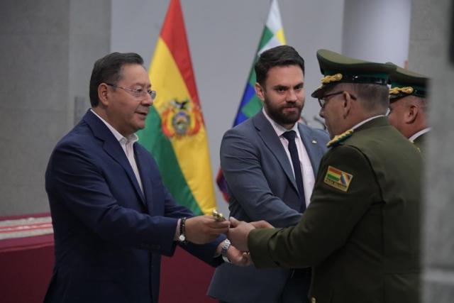 El presidente del Estado, Luis Arce, posesionó este jueves al Alto Mando de la Policía Boliviana, donde se reconoció la trayectoria profesional de los jefes policiales, quienes ahora tienen el grado de generales. En el acto de ascenso, se ratificó como comandante general a Álvaro José Álvarez Griffiths, quien fue ascendido al grado de general superior.