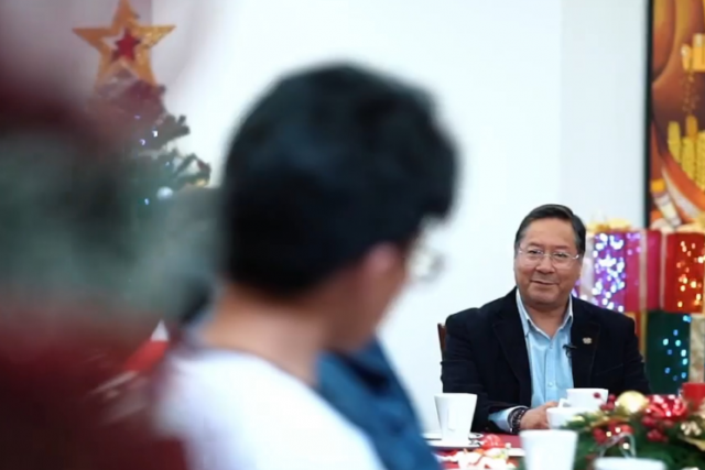 Acompañado de varias personas para celebrar Navidad, Arce aseguró que el “2025 será un año histórico, el año de nuestro Bicentenario” porque permitirá “un momento de renovaciones y de oportunidades para seguir avanzando hacia la Bolivia industrializada, libre e independiente que soñamos, y además una Bolivia digna, justa y llena de oportunidades para todas y todos”.