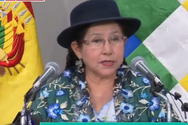 La Canciller del Estado boliviano en conferencia de prensa.