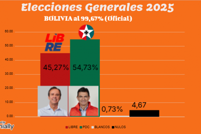 Hasta las 11:30 de este miércoles 22 de octubre, el cómputo oficial del Tribunal Supremo Electoral (TSE) llega al 99,67% de avance y se termina de ratificar el triunfo de Rodrigo Paz.