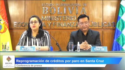La Viceministra de Pensiones y la Directora de la ASFI explicaron que la reprogramación de créditos se aplica a nivel nacional, desde el 11 de noviembre, y pueden acceder todos los sectores o personas naturales que tengan un crédito en el sistema financiero y que se hayan visto afectadas por el paro en Santa Cruz o de los efectos de fenómenos climatológicos.