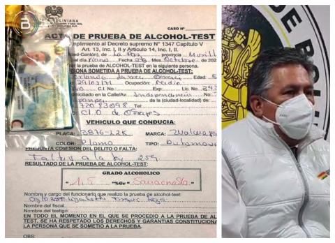 En la prueba de alcoholemia, el Presidente del Colegio Médico de Bolivia registró un grado alcohólico de 1,5, mismo que es “sancionable de acuerdo con la ley”.