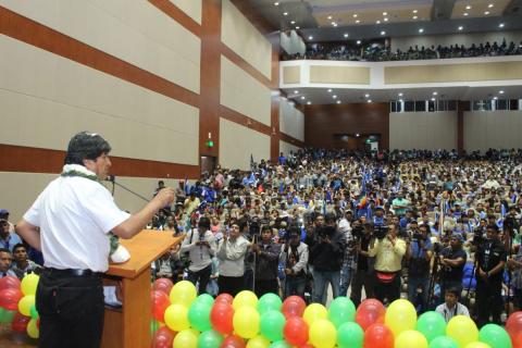 Morales participó en la inauguración del XIV Congreso Ordinario de las Seis Federaciones del Trópico de Cochabamba en el edificio del Parlamento de Unasur.