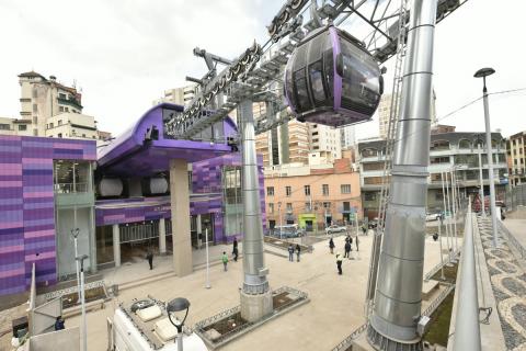 La Línea Morada tiene tres estaciones, una detrás de la ex Ecobol, a metros del Prado de La Paz, la segunda en Faro Murillo de El Alto y termina en la avenida 6 de Marzo, en terrenos de la Aduana Nacional.