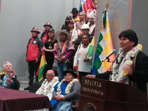“Si el Alcalde de La Paz nos concediera una manzana cerca al Palacio, ahí estarían todos los ministerios”, señaló Morales en la inauguración de la Casa Grande del Pueblo.