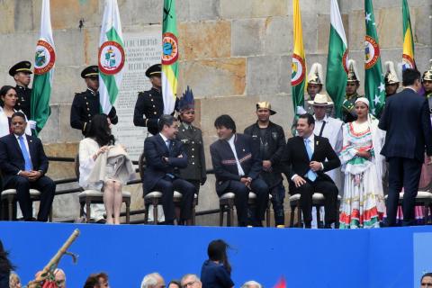 "Desear éxito al hermano Iván Duque, esperamos coordinar trabajos para el bien de nuestros pueblos y de América Latina”, aseveró Morales tras su llegada a suelo colombiano.