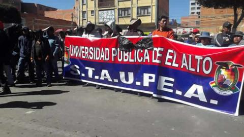 La docente María Isabel Baldellón y la estudiante Isabel Camargo Mamani se tapiraon en instalaciones de la Federación de Juntas Vecinales (Fejuve) de El Alto.