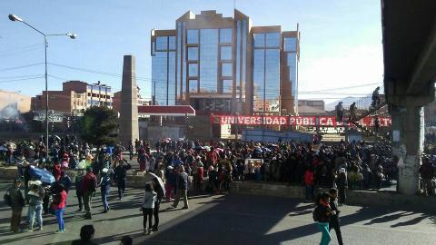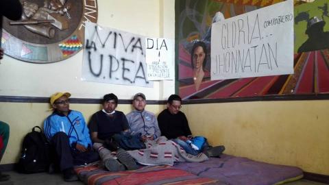 Las tres personas que están en la huelga de hambre son Daniel Chinche (estudiante), José Luis Machicado (administrativo) y Ramiro Huayta (docente) y están ubicados en la COR de El Alto.