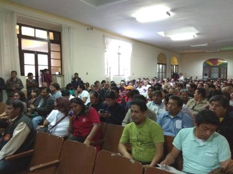 La Asamblea convocada por el Comité Cívico de Defensa de los Intereses de Chuquisaca entró en un cuarto intermedio por falta de acreditaciones. A su salida, Urquizu fue agredido por un grupo de manifestantes.
