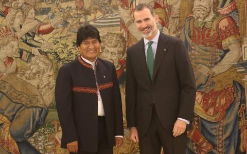 El Presidente de Bolivia hizo una parada en España antes de ir a La Haya. Se reunió con el Rey Felipe VI y con empresarios. Además, tuvo un encuentro con el mandamás del Real Madrid.