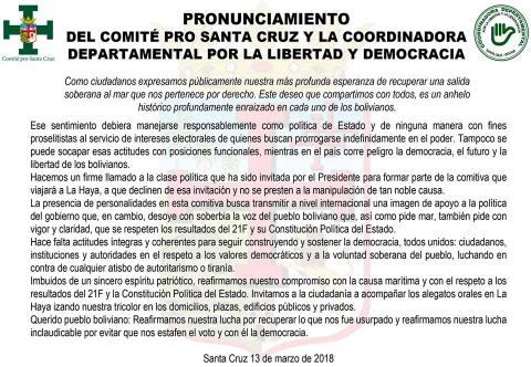 “Creo haber demostrado que Santa Cruz ha continuado recibiendo importantes cantidades de recursos económicos para atender las necesidades que tiene, pero además el gobierno nacional también ha realizado importantes inversiones en ese departamento”, señaló Rada.