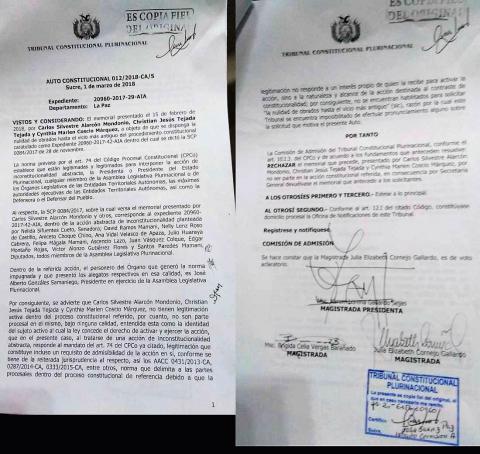 Arce indicó que dicha sentencia desarrolla el art. 256 de la Constitución boliviana en función al art. 23 de la Convención Americana sobre Derechos Humanos “Pacto de San José de Costa Rica”.