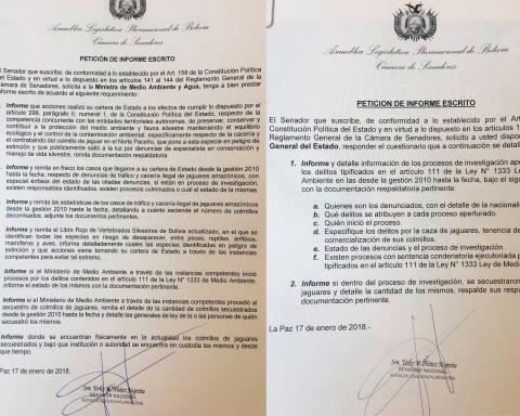 El senador Yerko Núñez solicitó informes escritos sobre los casos de tráfico de colmillos de jaguar amazónico y las acciones realizadas para la protección de esta especie.