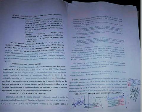 Diputados de UD solicitan que los magistrados asignados a la revisión de la acción de inconstitucionalidad presentada por el MAS se excusen de dicha labor por tener procesos pendientes en la Asamblea Legislativa.