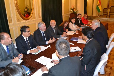 Alrededor de las 16 horas, se encontraron autoridades del gobierno con dirigentes de la COB para comenzar el análisis del pliego del ente sindical en su dimensión social.