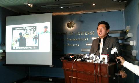 El viceministro de Régimen Interior, José Luis Quiroga, denunció al presidente de Adepcoca, Franklin Gutiérrez, a quien señala como el provocador de acciones desestabilizadoras y golpistas.