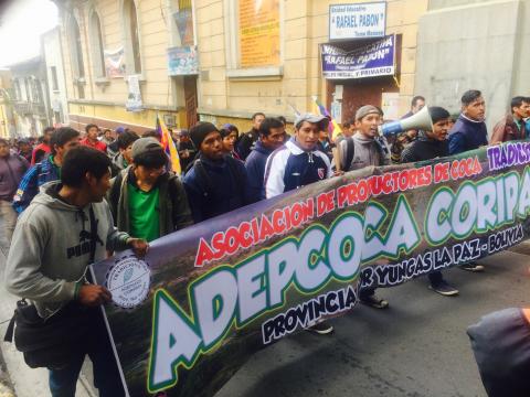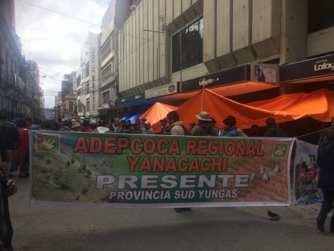 Cocaleros de Los Yungas se instalaron alrededor de la plaza Murillo protestando por el proyecto de la Ley de coca, la presidente de Diputados, Gabriela Montaño, indicó que hoy no se tratará en la ALP.