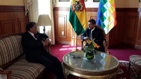 El canciller Huanacuni recibió el embajador Álvarez quien reveló que Macri invitó a Morales a ver el clásico argentino entre Boca y River el 16 de abril.